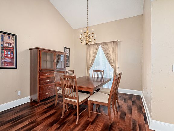 Sparkling pool and spaBrick hearth fireplaceNewer carpetWood flooringLarge covered patioGranite countertopsVaulted ceiling