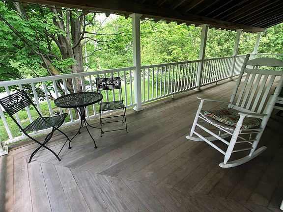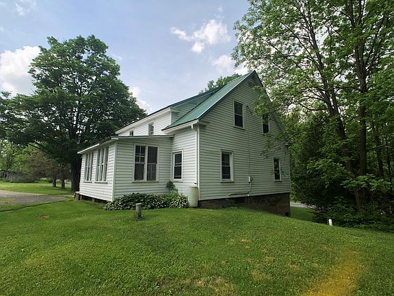 Updated farmhouse on 66 ACRES of fields, woods and streams! Set on a quiet country side road with minimal traffic, this property is truly a private oasis. The sunny home boasts kitchen open to the family room, living room, and second family room upstairs, 5 bedrooms plus an office, first floor laundry, large mudroom and 2 nicely renovated bathrooms. Wraparound porch is perfect for taking it all it! PLUS a 4,200 sq. ft. pole barn- perfect for your toys and animals! Economical wood fired furnace!