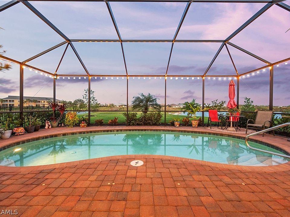 Wow! Here's your chance to buy a "better than new", beautifully upgraded 4B+Bonus room "Amalfi" custom lakefront pool home!! Available for immediate occupancy, this home features an amazing outdoor living space w/a fully extended pavered lanai & pool deck complete w/a beautiful saltwater heated pool, custom outdoor kitchen w/awning, lighted pool cage, stereo speakers & gorgeous lake & sunset views! Why wait to build when you can get all of the custom features anyone could want - full house wtr softener/filtration sys., crown molding thru out, beautiful custom landscaping w/flowering plants/shrubs, concrete landscape curbing, upgr. fans & lighting, whole house gutters, tiled kitchen backsplash, hurricane shutters etc.. Wonderful open plan w/large great room opening onto the huge lanai, cozy breakfast area & formal dining rm, downstairs bedroom w/full bath,3 spacious bedrooms upstairs incl. huge (15x15) owners suite w/luxurious bath, huge (17x16) bonus rm. makes a great playroom, hobby rm. etc..Low fees incl. cable/wifi, & irrig., River Hall Clubhouse amenities: fantastic fitness ctr, resort style pool, playground, tennis & pickleball, basketball, billiards & more!!
