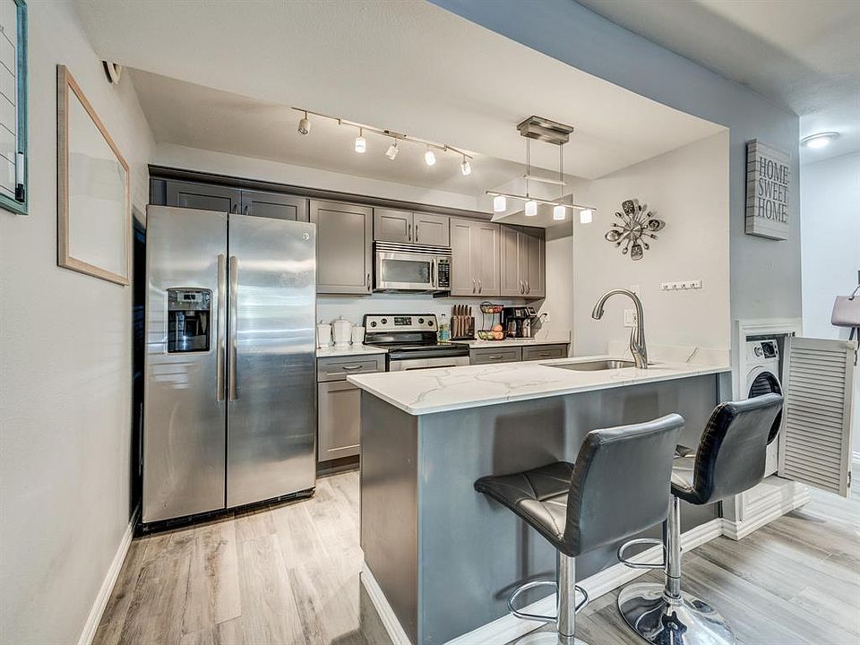 LOCATION, LOCATION, LOCATION! Updated condo near uptown and Oaklawn area, within walking distance to dining and entertainment! Enjoy low maintenance living with local city conveniences. Inside this chic condo, you'll find an open living concept with a wood burning fireplace. Kitchen boasts Quartz counters, SS appliances, refrigerator, and large sink. Beautifully updated bathroom features Quartz counters and double sinks. Spacious bedroom offers a walk-in closet, flexible space, and access to your private patio. Appliance package includes: washer, dryer and refrigerator. Utilities included in monthly rent: water, trash and gas. Indoor area is gated, tenant covered parking and guest parking available. MUST SEE!