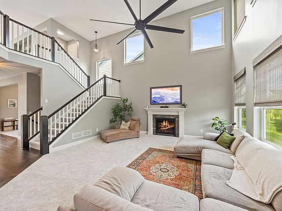 Welcome home to this gorgeous Mattamy built home in the highly desirable Chevalle neighborhood of Chaska. This Ambrose floorplan includes a fully finished walk out lower level with 5th bedroom, 4th bathroom, flex room, home gym (pre-wired for sauna), and rock climbing wall! The main floor features a 2 story great room with gas fireplace and includes wireless operated blinds and ceiling fan. The spacious kitchen features a tiered center island that includes the sink with reverse osmosis drinking water system, dishwasher, and breakfast bar. The kitchen also features stainless steel appliances, granite counter tops, custom range hood, and butler pantry. The main floor also includes the formal dining room, office, informal dining, half bathroom, owners entry, and walk-in pantry. The large master suite includes french doors, walk-in closet, and private bathroom with separate tub, shower, and water closet. The upper level lives spacious and convenient with three more bedrooms, full bathroom, loft, and laundry room. This home also features a large 3 car garage (tandem), irrigation system, and maintenance free deck. With close to 5,000 sq/ft this home lives large and has countless upgrades including all brand new carpet and paint in 2024. This is an excellent location with close proximity to downtown Victoria, easy access to hwy 5 & 212, and just minutes from Target and Costco. Don’t forget to check out the neighborhood dock on Lake Bavaria.