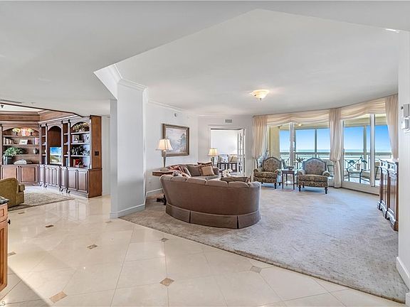 Elevated on the 14th floor of The Brittany in prestigious Park Shore, this sophisticated residence presents over 3,000 square feet of thoughtfully designed luxury living with sweeping views of the Gulf, Venetian Bay, and the glittering city skyline. Appointed with timeless finishes, the condominium showcases lasting elegance across 3 bedrooms plus a den and 3.5 baths. The main living area opens to a Gulf-facing lanai, while a secondary seating area and wet bar are adjacent to the kitchen to create the perfect setting for entertaining family and friends. The spectacular primary ensuite faces the Gulf and features a separate tub and shower, dual sinks, and a generous walk-in closet, while two spacious guest suites, each with a walk-in closet, enjoy private access to the east-facing terrace that captures morning light. A versatile den with floor-to-ceiling Gulf views further enhances the plan. Additional highlights include zoned climate control, electric storm shutters, abundant storage, and two deeded garage spaces within the secure building. This residence is being offered turnkey furnished. The Brittany is a gated, Gulf-front community providing residents with a premier collection of amenities, including direct beach access, a resort-style pool and spa, tennis courts, a state-of-the-art fitness center, four guest suites, and elegant social and card rooms, all supported by 24-hour front desk service. Ideally located within walking distance to the fine dining and boutique shopping of The Village on Venetian Bay, and only minutes from Waterside Shops, Artis–Naples, Mercato, and the world-class dining and galleries of Fifth Avenue South and Third Street South. This residence offers a truly sophisticated Naples lifestyle with optional boat slips available for lease or purchase at the nearby Venetian Yacht Club.