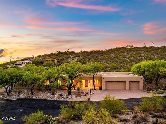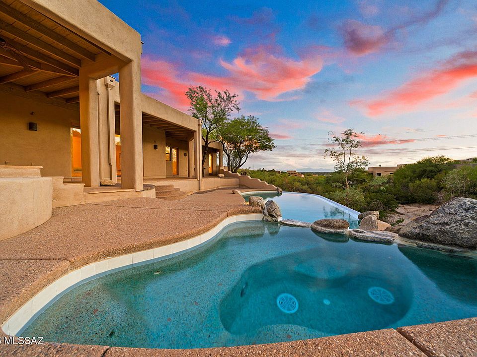 Discover your private retreat in the Catalina Foothills, where mature trees and desert landscape create a rare sense of peace and seclusion. Spend your days unwinding by the infinity-edge pool and spa, with views of the Catalina Mountains, beautiful city lights, and wildlife out your back door. Step inside to find a contemporary design filled with natural light, soaring ceilings, and open spaces designed for both lively entertaining and quiet relaxation. With 4 bedrooms, 4 bathrooms, and 3,944 sq. ft. on a very private street, this full custom home provides comfort, function, and timeless style. Don't miss this rare opportunity to own your own desert oasis and experience Tucson living at its finest.