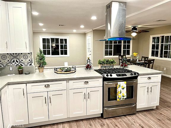 Great Opportunity, THIS PROPERTY HAS BEEN COMPLETELY REMODELED! Airy, spacious and versatile open-plan, brand new kitchen with white shaker style cabinets with self closing doors and drawers, quartz countertops & spacious Breakfast Bar; new water resistant wood laminate flooring throughout the house, new paint inside and ourside of the home, recessed lighting, ceiling fans on all bedrooms and in dining room, both bathrooms have been remodeled with brand new vanity cabinets & quartz counters, new bathtub and beautifully done shower walls with ceramic tile. This house features 3 bedrooms and 2 baths, the primary Bedroom has a primary bath that has a door that leads to the backyard that can be used as a separate entrance. The paint color to the interior and exteriosr of the home are gorgeous!! A warm and earthy tone inside that can go with any kind of decoor, and the outside is vibrant and unique, the 2 car garage it is attached to the house, but has no direct acces to the home, there is a side door that leads to the backyard. There is plenty of parking on the side driveway next to garage, perfec for multiple cars, RV, Boat or Recreational Toys. Location is conveniently close to 60 Fwy. Things to do in the area: Art Float (4.8 miles) The Cove Water Park (1.4 miles) Jurupa Mountain Discovery Center (1.7 miles) UCR Botanical Gardens (8.1 miles) CalSpeed Karting Center (7 miles) The Ride 7D Ontario (7.7 miles) Mary Vagle Museum & Nature (3.7 miles) Adams Motorsports Park (4.6 miles) also plenty of great options to grab a bite and grocerry stores. This is truly a great home!!! THIS PROPERTY HAS FULLY PAID SOLAR PANELS