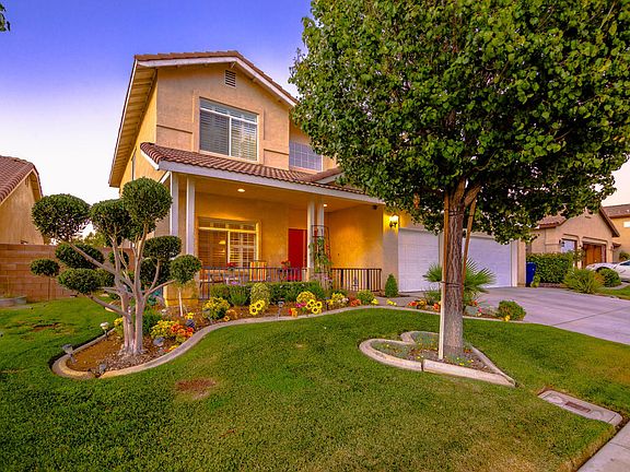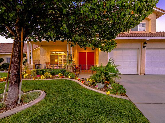 Beautifully upgraded home in West Palmdale. This home has an inviting and open layout. The kitchen has been upgraded with extended granite countertops, wine fridge, GE stainless steel appliances, upgraded light fixtures, and built in wine rack. The master bedroom is grand with its sitting area, fire place, and outdoor balcony. The down stairs has a large bedroom, full bath, and custom oak doors. You can enjoy the beautiful back yard with its gorgeous views of the mountains, sitting by the built in fire pit, and the growing grapes on the beautiful trellis. Come make this your new home today!