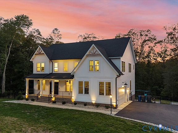 Welcome to this stunning modern farmhouse two-story Colonial single-family home with an unfinished walkout basement, perfectly situated on a private 6.1-acre cul-de-sac lot in the desirable Rock Creek neighborhood of Mechanicsville. Blending timeless Colonial farmhouse architecture with modern upgrades, this residence offers elegance, comfort, and exceptional privacy. The exterior showcases a grand double door entrance, spacious front porch, double-wide paved driveway, and 2-car side-entry garage. A retaining wall with step lighting, black aluminum fenced backyard, and 6-inch seamless gutters with underground drainage add both charm and function. Inside, the main level is defined by White Oak engineered hardwoods, a welcoming foyer, and a dedicated study/office. The formal dining room is ideal for entertaining, while the expansive family room centers around a gas fireplace with a custom White Oak barn beam mantel. A bright sunroom offers a relaxing retreat with abundant natural light. The gourmet kitchen is designed to impress, featuring a large center island, granite countertops, stainless steel appliances, double ovens, a custom White Oak range hood, abundant cabinetry, and a walk-in pantry with transom window—a true chef’s dream. Upstairs, the luxurious oversized primary suite offers a spa-inspired bath with double vanity, soaking tub, walk-in shower, and dual closets. Bedrooms 2 and 3 share a Jack & Jill bath with double vanity, while Bedroom 4 has access to a stylish guest bath. All bathrooms feature upgraded designer tile floors, and the upstairs laundry room adds convenience with modern finishes. A versatile loft provides flexible space for a media room, playroom, or second office. Additional highlights include a whole-house Kinetico water softening system, whole-house Generac generator, wired CAT6 ethernet throughout and a 1,190 sq ft unfinished, conditioned walk-out basement with endless potential. The lot itself features two gullies with running water that connect to a creek; true tranquility!