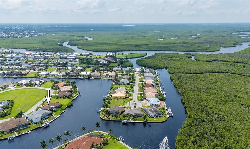 This location is a boater's dream. Breathtaking SW view of the rim canal and 5 minutes by boat to open water through the Buckley's Pass exit. Ninety-One Feet of seawall space means you can have 2 lifts and a concrete dock is in place now with electric run to seawall. This home was built for and loved by the original owner. Living Room & Family Room & Dining Room & Bonus enclosed Florida Room, split bedroom plan. Soaring ceilings. Central kitchen. Inside laundry room. Lots of storage with walk-in closets for each bedroom. 2nd bath has pool access door. Extra Large in-ground swimming pool and caged lanai. Circular driveway and 2 car attached garage. Bring your personal touches to renovate this home and love it too or buy it for this spectacular location and build your dream home here. Punta Gorda owns and maintains the seawalls. Ask me about the seawall program, its a great benefit to owners. Punta Gorda Isles has a Civic Association ("PGICA") available for residents to join. The PGICA offers a variety of activity clubs and social events. It's a great way to meet your new neighbors. There is always something to do when living in Punta Gorda; award winning restaurants, shopping, Event Center, Fisherman's Village, over 20 golf courses within an easy drive, boating, fishing, pickleball, tennis, and much more. Don't hesitate. This house is priced to sell at land value! Sold AS-IS; Buyer responsible for due diligence, no warranties.