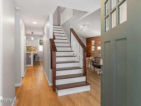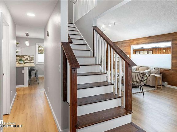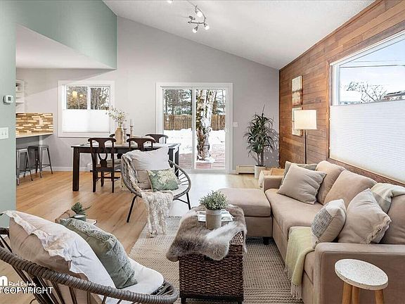 Beautifully updated home nestled in a cozy cul-de-sac in West Anchorage. Open concept floor plan opens to the beautifully remodeled kitchen with SS appliances and updated flooring. Lots of light from new triple-pane windows. Excellent well-kept yards with raised garden beds and mature raspberries. Ready to move in!