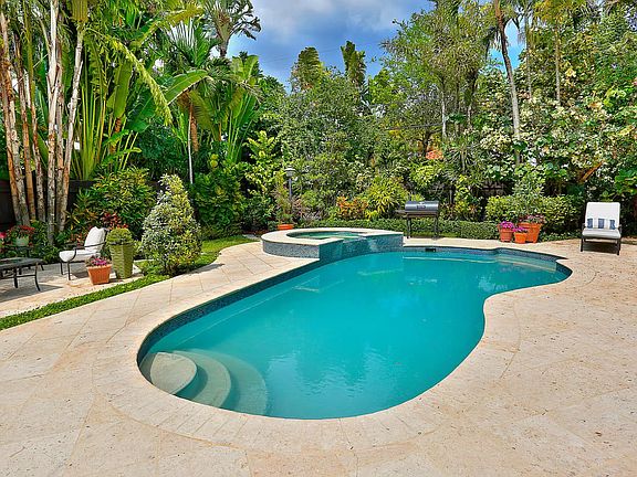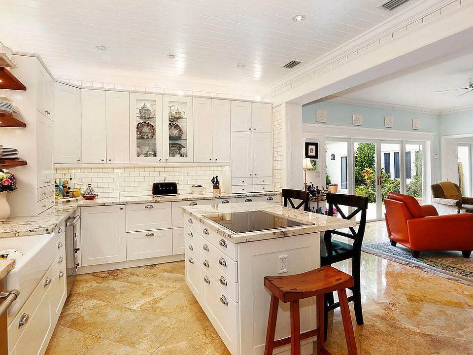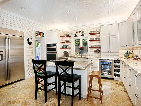Lovely home w/ classic architectural details, impeccably updated throughout. Located on a quiet, tree-lined S. Grove street, just a short bike ride to the village & bayfront parks. Light-filled living spaces include formal living/dining rooms, office & a spacious family room featuring walls of glass overlooking lushly landscaped grounds. Stunning, open kitchen w/wood cabinetry, marble countertops, Jenn-Air appliances & island w/seating. Notable features include marble flooring, custom built-ins/millwork and stone fireplace. Master suite has an expansive walk-in closet & luxurious bath w/ large rainshower. Guest suite ideal for multi-generational families, includes living room, kitchen & 2 BR/1BA. Spectacular, park-like garden with expansive terraces surround tranquil pool & spa.
