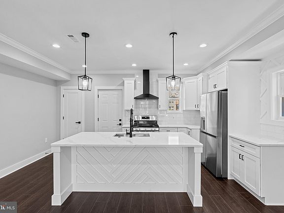 Welcome to this stunning, fully remodeled semi-detached rowhome offering over 2,200+ square feet of thoughtfully designed living space across three spacious levels—all for under $325,000. From top to bottom, this home has been transformed with modern finishes while preserving its classic charm, creating a perfect blend of comfort, style, and value. As you enter, you're greeted by an open-concept main level featuring expansive living and dining areas filled with natural light, complemented by an eye-catching navy blue accent wall with luxury vinyl flooring and a seamless flow that's perfect for both entertaining and everyday living. The brand new kitchen is the heart of the home, complete with quartz countertops, soft-close cabinetry, stainless steel appliances, and a large island that invites gathering. Upstairs, the private living quarters include a spacious primary suite with a beautifully updated ensuite primary bathroom w/ the option to add a soaker tub inside (left in bedroom for size reference), along with two additional bedrooms and a stylish full bath. The fully finished basement offers incredible flexibility with a large open area perfect for a family room, home office, or guest suite, plus a full bathroom and laundry area. Enjoy outdoor living with a private gated backyard ideal for relaxing or hosting, along with the convenience of off-street parking. With brand-new systems throughout and high-end finishes at every turn, this home is truly move-in ready. This is a rare opportunity to own a fully renovated, spacious home at an unbeatable price. Schedule your showing today and experience everything this incredible property has to offer.
