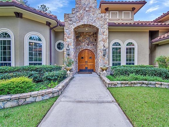 Come see this BEAUTIFUL Mediterranean style home. This 1.5 story home not only has a gorgeous tile roof and circular driveway, but sits on 1.1 acres of professionally landscaped lawn inside Bender's Landing. An open floor plan with all 4 bedrooms downstairs. 14' ceiling throughout, with tons of custom features to enjoy. A formal dining area with a massive chandelier, and an elevated ceiling. A formal sitting are perfect for entertaining, and open to the kitchen and dining room. HUGE kitchen with double ovens, tons of counter and cabinet space, and a walk-in pantry. Viking Appliances throughout (Including the outdoor cooking area). Huge wrap around break bar. Peaceful master bedroom with its own sitting area and His/Hers closets. Spa-like master bath with double sinks, jacuzzi tub, and an elegant chandelier will make this a wonderful retreat. Upstairs features endless possibilities, with a full bath and game room attached. Built in speakers throughout the home and patio.