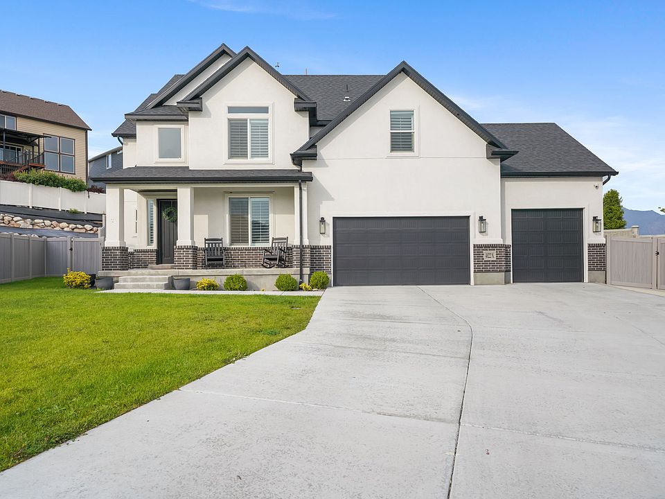 Spacious 5-bedroom, 3.5-bathroom home with den and 3-car garage. This property features a large yard ideal for entertaining, a hot tub, and beautiful views. The fully finished basement includes an additional living room with kitchenette, providing excellent space for guests or extended living. Interior highlights include dual thermostats, water softener, and an air scrubber for improved air quality. Conveniently located near schools and shopping (new Target and shopping center coming soon), with quick access to I-15 in approximately 10 minutes. The piece of land on the East side of the home between the fence and the road is owned by the city of Lehi, but the new owner has an option to buy the land from the city to expand the backyard even more.