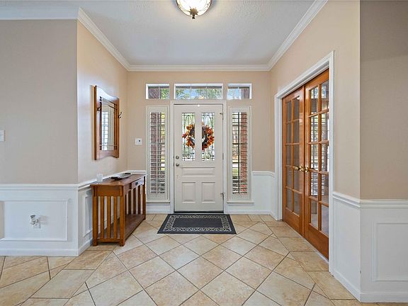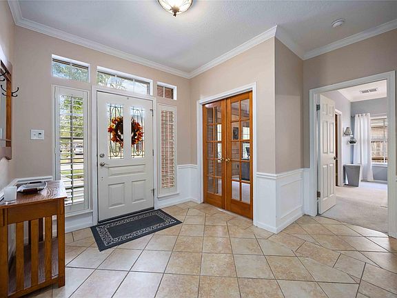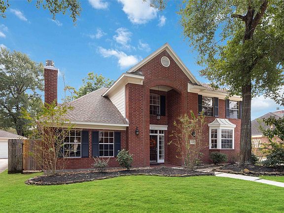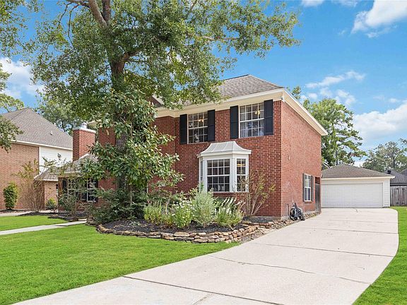 Welcome to your new home in Greentree Village! This elegant 4-bedroom, 3.5-bath home offers over 3,000 sq ft of living space on a quiet cul-de-sac in Kingwood. The open foyer reveals a beautiful view into the living room, & the study just off to the side—featuring custom built-in bookshelves, a fireplace, and double doors leading to the spacious primary suite. The completely updated primary bath feels like a spa, offering a relaxing soaking tub, separate shower, and dual vanities. The island kitchen features 42” cabinets, stainless appliances, and a breakfast bar. A formal dining area and Living room with another cozy fireplace. Upstairs includes three generous bedrooms and a large game room, complete with a stylish bar that stays with the home. Outside, unwind on the paved patio with a lovely view of a small charming wildflower garden that blooms beautifully. Zoned to top-rated Humble ISD schools and close to parks, trails, and Kingwood Country Club!