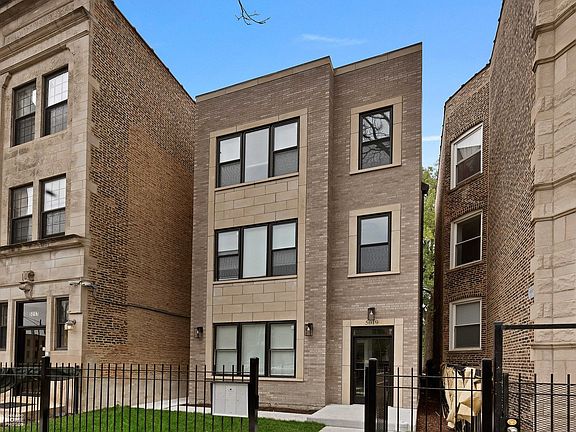 Premium Bronzeville Location- 3 Flat all 3 bedroom 2 bath units rear patio/decks each with 3 car garage. Intelligently designed apartments featuring clean white cabinetry in a professional kitchen setting, stainless steel appliance package, quartz island with a full backsplash and dedicated dining areas in each. Rich and warm wide planked LVT flooring throughout, making it both beautiful and practical for longevity. Open and bright living room has a separate breakfast nook for daily dining, and both guest bedrooms can accommodate queen-sized beds. Primary suite is expansive with walk-in closet and a spa-level bathroom with an oversized shower, glass enclosure, and crisp black metal plumbing and trim details. All units include high-efficiency furnaces, tankless hot water heaters, full window treatments, in-unit washer/dryer, private rear terrace, and secure premises with 3 car garage. Just a couple blocks to Mariano's, 5 minute walk to Indiana Green Line! AAA Trophy Piece Perfect Turn key, Owner Occupied or Future 1031 opportunity. Ability to package buildings. 1 year warranty included. Hyper Convenient, Exceptional property and location. Show and sell* Ask about other locations not yet listed coming up *