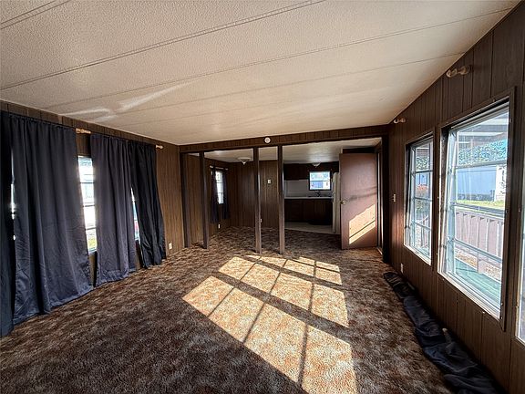 1973 14 X 66 single-wide mobile home on a leased lot in Target Range Trailer Court. Lots of windows for natural light, clean, and move-in ready. The buyer must be approved by park management before closing. Small pets, under 35 lbs., are allowed with approval from park management. This home features gas forced air heat, a plethora of cupboard space, and a storage shed outside.