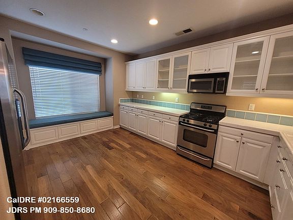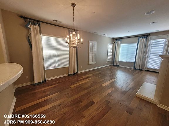 JDRS Property Management Inc. All Rights Reserved. CalDRE #02166559 This 3-bedroom, 2.5-bathroom and 2 car attached garage home is now available. Wood flooring downstairs and neutral carpet upstairs. Open floor plan family room and formal dining room area. Large living room features a decorative fireplace and ceiling fan. Kitchen has plenty of cabinet storage space, tile counter tops and bar top area perfect for bar stool seating. Kitchen includes stove-top/oven, microwave, refrigerator and dishwasher appliances. Upstairs loft can be used as an entertainment room. Laundry room includes, cabinets, sink and washer and dryer. Primary bedroom has large closet, private bathroom with dual sinks, bathtub and separate shower. The other 2 bedrooms are very spacious and offer plenty of closet storage space. Cozy private backyard. Community pool, jacuzzi, playground and clubhouse available and perfect to spend the summer evenings outdoors. This property is located near the 60 and 215 freeway, Downtown Riverside, grocery stores and many shopping plazas. . Monthly Rent: $3,300.00 Security Deposit: $3,300.00 (may vary, case by case basis) JDRS Property Management is the exclusive authorized property management company for this rental, offices located in Chino, CA. No payment required for tour of rental.