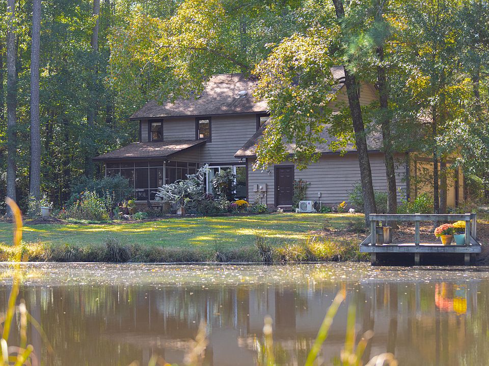 Welcome to 4022 W Cornwallis - a nature lover's oasis perfectly situated on a pond between Durham and Chapel Hill. Exhale as you pull down the wooded drive through the gate of this over 4 acre property. The contemporary home is perfect for hosting with two living spaces, formal dining space, and kitchen with updated stainless steel appliances. The addition of white oak hardwood floors throughout the main level create a beautiful sense of flow. The true showstopper at this property is the private pond in the backyard. Enjoy the views from the screened porch or main bedroom of the many birds and other animals that call the pond home (The current owner has seen blue herons, green herons, a beaver, and an otter to name just a few)! Though the property feels like a woodland escape, this home is 10 minutes from the Durham Performing Arts Center, 17 minutes to UNC, and 22 minutes to RDU International Airport.