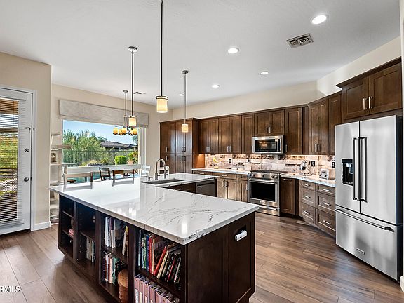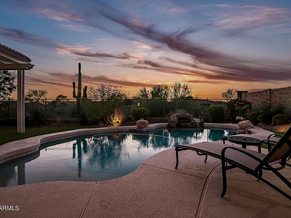 Welcome to this stunning Serenity model in the award-winning Anthem community! This single-level home features a breathtaking backdrop with view fencing overlooking a serene wash and walking trail. Enjoy your own backyard oasis, complete with a sparkling pool and a spacious Alumawood pergola, perfect for al fresco dining and entertaining. Inside, the home boasts brand new flooring and a fully remodeled gourmet kitchen with an oversized island. Energy-efficient features include owned solar, Andersen Windows, an updated HVAC system, and a tankless water heater. With an updated roof and thoughtful upgrades throughout, this property seamlessly blends style, comfort, and functionality. Don't miss your chance to make this gem home!
