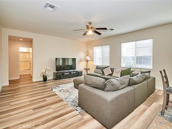 Welcome to a lifestyle of comfort and elegance at Vintage Reserve! With no HOA and a low tax rate—this is a rare find you won't want to miss. It is on a Cul-De-Sac. Offering approximately 3000 square feet, 5 bedrooms plus loft, and 3 bathrooms. A main-floor bedroom and full bath with new shower enclosure offering flexibility for guest. High ceiling with foyer at the entry. Living room and formal dinning room with cathedral ceiling. Breakfast nook and additional working desk in the kitchen. Almost new built-in appliances with farm sink. Newer luxury water proof plank flooring flows seamlessly through the home, creating a clean, modern feel with no carpet. 2” faux wood blinds for all windows, ceiling fans, and neutral paint colors enhance the elegant ambiance. The kitchen has a large quartz center island and counter top. Newer Samsung stainless dish washer, GE stove and microwave make entertaining effortless. The adjacent family room offers a warm gathering space, highlighted by a cozy fireplace. Upstairs, an oversized loft and the spacious primary suite features : double sinks, separated shower/oval tub and a huge walk-in closet. There are 3 more bedrooms with large closet. Individual Landry room with folding counter. The oversized 3 car garage with automatic garage door openers and one with ceiling fan. Patio cover at the backyard.. Located near parks, award-winning schools, shopping, restaurants, the Promenade Mall, and just a short drive to Temecula’s world-famous wineries and Old Town district.