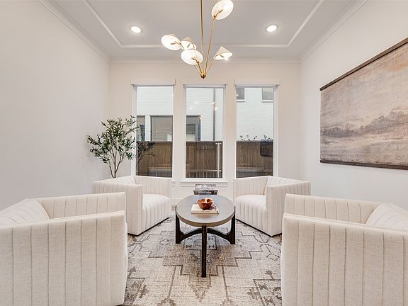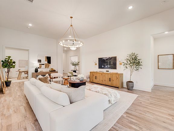 Come see this stunning single story model floor plan Tradition Home in the award winning master planned community of Light Farms in Prosper ISD!! Boasting 3 oversized ensuite bedrooms, office, 3.1 baths, media room, a 3 car tandem garage, and ample amounts of natural light & storage, this designer home is nothing short of exceptional! Following a stunning formal sitting room, dining or office, find an alluring rotunda just off the foyer. Soaring ceilings in the great room, kitchen, dining, & hearth room all overlook into the patio & backyard! The owner added new decorative lighting throughout the home. The fireplaces in the hearth room and patio are gas logs. In this chef's dream gourmet kitchen, it features a Level 8 Quartz countertops and white cabinets including uppers. Large center island with seating space, trash pullout, Whirlpool stainless steel appliances, gas cooktop, massive pantry and butlers pantry with mirrored tile backsplash & floating shelves. The media room is located off of the great room and is the perfect space for relaxing or entertaining. The primary suite overlooks backyard with palatial ensuite bath, large shower, free standing tub, separate vanities and a custom closet that is to die for! The utility room is accessible from the primary closet and hallway. The secondary bedrooms have private ensuite baths with large walk-in closets, making them ideal for comfortable living. Gorgeous flooring throughout home with ceramic tiles in baths. Enjoy your evenings on the covered extended patio with gas fireplace and decorative sconce lighting. Home is within minutes from the best shopping, restaurants, parks, amenity center, pools, schools, & easy access to Preston & DNT. Don't wait on getting this incredible one of a kind beautiful home!!!