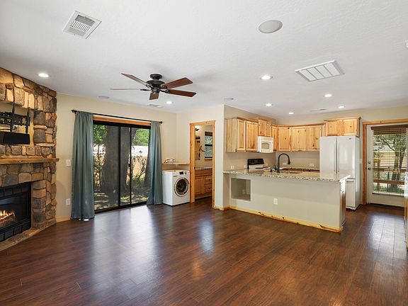 This charming 2 bedroom, 1 bath cabin is nestled on .46 acre in the heart of Pine. The adorable home has been completely updated with top of the line finishes, offering modern comfort in a private, tranquil setting. The open concept floor plan creates a spacious and inviting living area. Expand your living space to the outdoors with surround sound inside and out. Outside you'll find a completely fenced yard to keep the elk from eating apple, peach and apricot trees. There is a delightful chicken coop for those looking to enjoy fresh eggs daily. Upgraded electrical and plumbing throughout the house provide additional peace of mind. Enjoy the privacy of this secluded location while still being close to all the amenities you need. professional photos coming next week.
