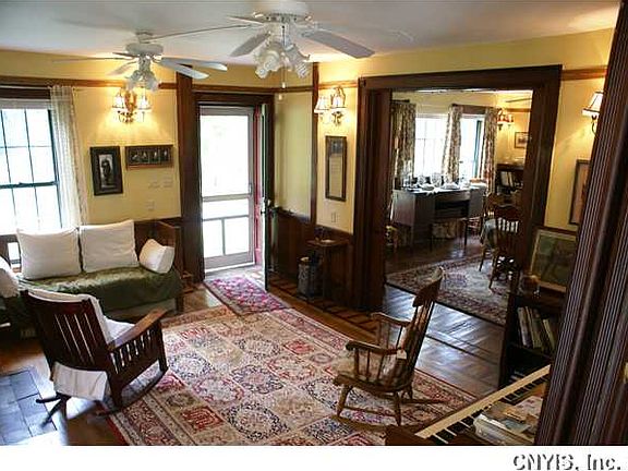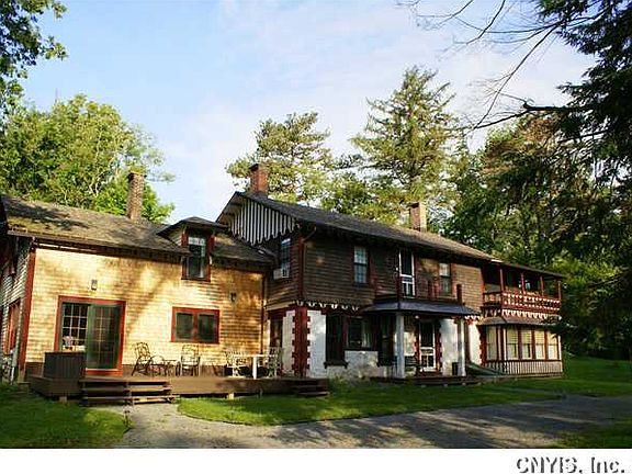 Welcome to FERNWOOD, steeped in history & designed & built by Lambertus Wolters Ledyard as his farm where he raised Guernsey Cattle in 1874. Updated with $350k plus of improvements including 48 new thermal windows, 50 year architectural roof, rebuilt basement & foundation, natural gas, + much more. Home has cottage feel w/three fireplaces, 7-8 bedrooms, inlaid hardwood floors, new kitchen w/soapstone counters & large eating area, Viking range + newer appliances. A truly unique home set on 6.5 park-like acres less than .25 miles from village w/municipal water and private septic.