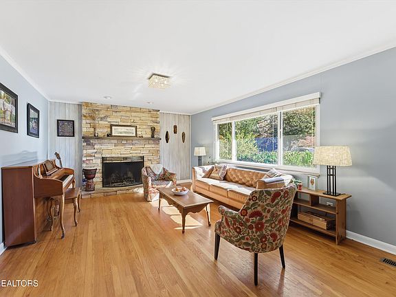 Inside, you'll find beautiful hardwood flooring and a bright, inviting living space anchored by one of two cozy fireplaces. The updated kitchen features sleek quartz countertops, an induction range, and all stainless-steel appliances installed within the last three years. The layout flows effortlessly into a spacious dining area and screened porch, perfect for relaxing or entertaining year-round.