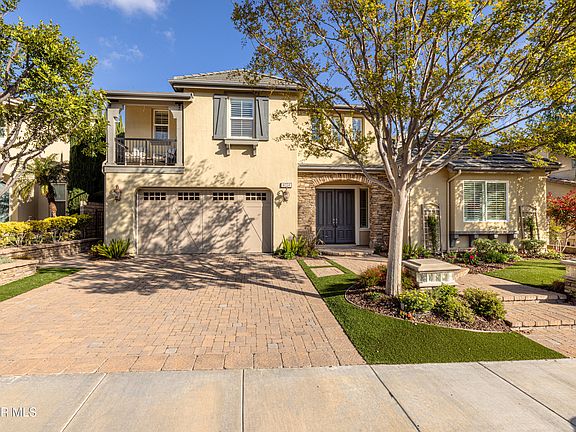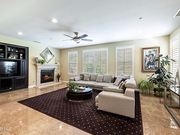Your dreams can come true here in Big Sky! This gorgeous Simi Valley home is the one you've been waiting for! Discover the embodiment of style and comfortable living at this 2006 year-built newer home in the much desired Windstone tract, boasting almost 4,000 sq. ft. Upon entry, you are greeted by an impressive foyer, lofty ceilings, and open, airy rooms. Plantation shutters and beautiful flooring are featured throughout the house. This gorgeous residence features four spacious bedrooms and a study. Each of the three upstairs bedrooms has their own bathroom. The downstairs guest bedroom also includes its own bathroom with a convenient walk-in shower. Entertain with ease in the open living area, with a see-through fireplace from the living room to the study, a spacious dining area, a powder room, and a wonderful, oversized center island kitchen with all the bells & whistles. The kitchen features a built-in refrigerator, stainless steel appliances, bar stool seating at the island as well as an eating area. In addition, it overlooks the amazing family room with another fireplace. Moving upstairs, the primary suite is a relaxing sanctuary, complete with a sitting room/retreat perfect for a nursery, home office, workout room, and more. The beautiful ensuite primary bathroom is spa-like, offering the ultimate in comfort with dual sinks, a generously sized soaking tub, a separate shower and a large walk-in closet. Also upstairs, you will find a loft/sitting area with a built-in desk. The professionally, landscaped, low-maintenance yard is perfect for entertaining. The backyard is ready for summer gathering, dining al fresco with the custom BBQ center, or simply unwinding in the sparkling pool with spa and water features Additionally, the home offers the convenience of an indoor laundry room, newer dual zone central air & heat, recessed lighting, direct access 3 car garage with EV charger, and energy saving solar panels. The Big Sky community can complement your lifestyle with wonderful walking and hiking paths, parks, easy access to shopping, and more amidst a coastal breeze.