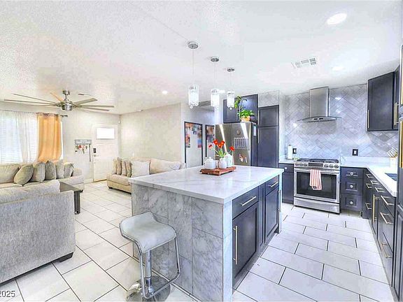One-of-a-kind! This beautifully remodeled 4-bedroom home with NO HOA offers possible RV parking plus a spacious front and backyard. Step inside to an open-concept layout filled with natural light in the living room, ceiling fans, and tile flooring throughout. The modern kitchen boasts backyard views and a functional island, showcases custom cabinetry with gold hardware—perfect for cooking and entertaining. Both bathrooms have been fully upgraded with contemporary finishes, making this home move-in ready!