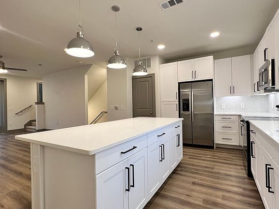 Units available for October, November, and December! This townhome has gorgeous modern finishes, a large private yard, two car garage, and thoughtfully designed layout. The kitchen features stainless steel appliances, sleek white countertops, and a massive island with storage. The adjoining living space is perfect for relaxation and entertainment. Natural light pours through the large windows that open up to a private balcony. Upstairs you'll find two bedrooms with ensuite bathrooms. The primary bathroom features a large walk in closet, double sinks and a separate walk-in shower and tub. The third bedroom or flex space is located on the first floor. Amenities include an infinity edge pool, gym, grilling station, fire pits, co-working space, lake with jogging path & two dog parks. This townhome offers easy access to shopping, dining, & entertainment. 12-15 months lease terms available. Additional monthly fees include $15 package fee and $25 trash fee. If applicable there is a $450 pet fee and $30 pet rent fer month. Application is $85 per adult, $250 admin fee and $1000 deposit.