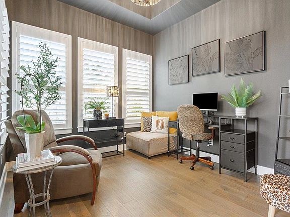 Gas fireplaceWood flooringDedicated officeStainless steel appliancesAmple workspaceWell-landscaped yardGranite countertops