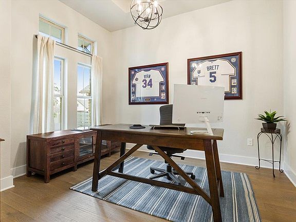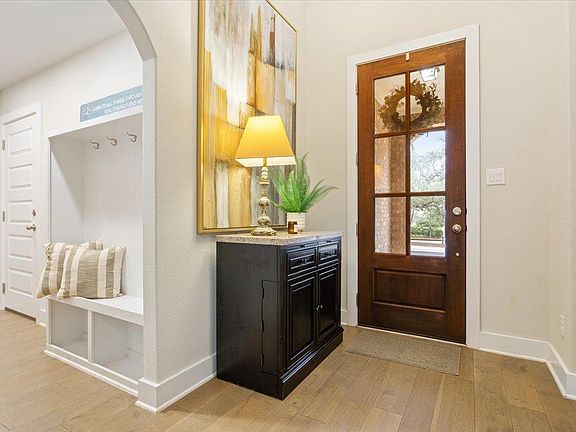 Welcome to 4024 Mercer Rd, a beautifully designed single-story home located in the highly sought-after Wolf Ranch Hilltop community of Georgetown. This 3-bedroom, 2-bath home offers a functional layout with thoughtful upgrades throughout. The open living area features 12-foot ceilings, wood flooring, new plantation shutters, and a gas fireplace, creating a warm and inviting space. The kitchen is equipped with granite countertops, stainless steel appliances, and ample workspace, flowing seamlessly into the main living areas for easy everyday living and entertaining. A dedicated office and built-in workspace nook provide flexibility for working from home, while the sunroom offers a bright and relaxing retreat. The primary suite includes a walk-in closet and a well-appointed en-suite bath. A mudroom with access to the two-car garage adds convenience and organization. Outside, enjoy a well-landscaped yard and a back patio ideal for outdoor dining or relaxing evenings. The brick exterior adds timeless curb appeal. Located in Wolf Ranch Hilltop—named the 2024 Master Planned Community of the Year—this home offers easy access to shopping, medical facilities, downtown Georgetown, and major highways, combining comfort, convenience, and community in one exceptional setting.