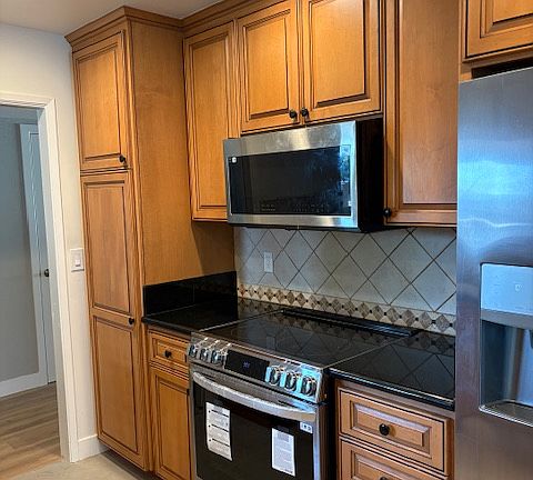Th i s home is nested in the Elegant Evergreen Creekside area, spacious 2 story home great for t he large family, 5 bedrooms, 3 full baths, a master bedroom located downstairs along with 2 other bedrooms and 2 bathrooms, a living r oom with recessed lighting here and throughout the home. The family room with a fireplace has a slider to the back yard. K itchen with granite, new stove, microwave, dishwasher and has a double refrigerator. Separate laundry room inside . The upstairs 2 bedrooms s hare a Jack & Jill bathroom . The home has been completely repainted inside and out with all new doors, floors, remodeled bathroom, recess lighting and more. The kitchen has granite countertops, with a new range, microwave and has a dishwasher, double refrigerator. Separate dining area. New landscaping in front and we are working on the large back yard. Fruit trees in the back are an extra plus. Extra off street parking, boat or RV parking. The property is located within walking distance to the Creekside Cabana Club featuring swimming pools, basketball, volleyball, BBQ and more. Great Schools and located near shopping, dining and entertainment. Must see to appreciate the work that has been done in the home. Garage- 2 car attached with new garage door, plus automatic opener. Extra storage area in garage Gardener included. Tenant pays all utilities.