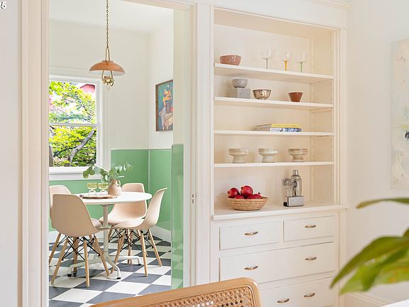 Timeless tile workBig living spacesVintage charmerDoor into the backyardWalk-in closetRefinished to a gleamStrom bath fixture