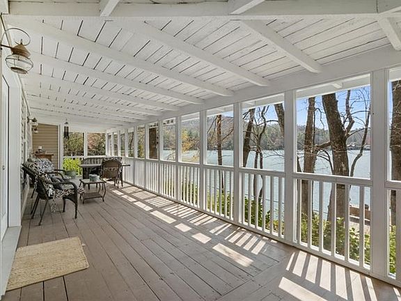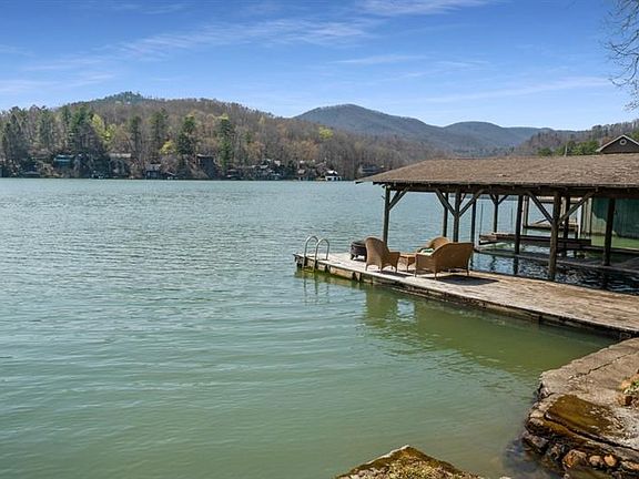 FEE SIMPLE 4BD, 2.5BA, 2200sqft Lake Burton Cottage offering an incredible lakefront experience with sweeping panoramic lake views! Enjoy the comforts and convenience of lakefront living only steps from the shoreline! Oversized 26x26 2-stall boat house with extended sun deck and permit for floating dock, plus wharf, seawall, and dockage for additional boats. Newly renovated interior has rustic pine floors, beaded board wainscoting, paneled ceiling, custom built-ins, all new fixtures, open floor plan, and a crisp new cottage feel. Stunning kitchen has quartz tops, new stainless appliances, floor to ceiling custom maple cabinets, contrasting island with bar seating, and a picture-perfect window over the kitchen sink framing lake views. French doors open the main living space to a spacious screened porch perfect for lounging and dining lakeside, and with a Southwesterly exposure, you'll have year-round sunset views. The terrace level is tiled with full bath, has plenty of flex space, and currently hosts 2 additional beds. Level lot with fenced backyard is perfect for small children and pets. Gravel drive with ample parking. Located in Dick's Creek Cove and convenient to Clayton. 2021-05-20