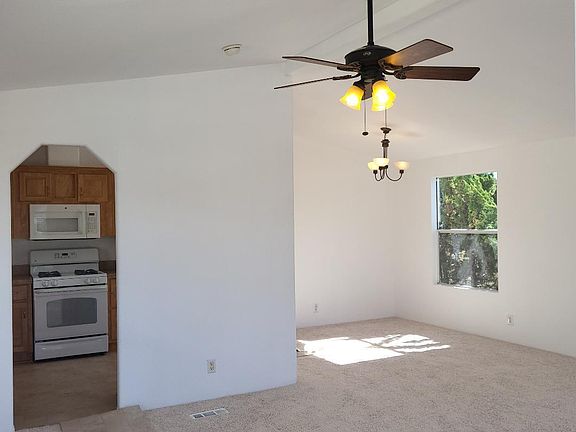 2007 home is 2 bedroom and 2 bathrooms. Drywalled interior and vaulted ceilings, new flooring and paint throughout. Dual pained windows, shingle roof. Living room is large with vaulted ceiling and dining room. Main bedroom has a sliding door to side yard and a spacious en suite bathroom with walk in shower. Hall bath has tub and shower combo. Large and peaceful front deck. Laundry room is off the hallway. Corner lot so only one neighbor. Shed and carport.