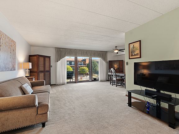 Welcome to this Beautifully maintained 2 Bedroom, 2 Bath Condo tucked away on a quiet cul-de-sac street in Oak Lawn. Built with durable Flexicore construction, this home combines comfort, privacy, and convenience. Step inside to a spacious Living Room with sliding doors that open to a private Balcony, perfect for relaxing outdoors. The adjoining Dining Room offers a seamless flow for entertaining, while the Eat-in Kitchen features oak cabinets, honeycomb tile backsplash, ample counter space, some stainless-steel appliances and dining area. The Primary Bedroom Suite boasts a walk-in closet and private full Bath. A second Bedroom and full hallway Bath provide additional comfort. The unit also includes a Utility Room with in-unit washer and dryer for everyday ease. A rare find, this condo features a fenced-in private Yard with a manicured flower garden, an ideal retreat for outdoor enjoyment. Additional highlights include a shared 2-car tandem Garage with a secured 12x12 Storage/Workshop room. HOA fee covers water usage, scavenger, lawn care, and snow removal. Enjoy this prime Oak Lawn location with shopping, dining, fitness, and medical facilities just minutes away.