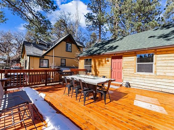 Welcome to this beautiful and cozy log cabin nestled in the breathtaking scenery of Big Bear Lake. With its prime location, just a 5-minute walk to the lake and minutes away from the alpine slide at Magic Mountain, this cabin offers the perfect mountain retreat. Whether you choose to use it as a short-term rental property, as your personal second home, or for any other purpose, you'll find endless enjoyment in this mountain oasis. Step onto the large front deck, complete with a table and chairs, and immerse yourself in the tranquility of the great outdoors. It's the perfect spot to relax, unwind, and soak in the natural beauty that surrounds you. Inside, you'll find a well-appointed kitchen with stainless steel appliances, providing everything you need to create delicious meals. For added convenience, there's a stackable washer and dryer, making laundry a breeze during your stay. Whether you're seeking adventure on the lake, exploring the nearby attractions, or simply seeking solace in nature, this log cabin offers it all. Don't miss out on the opportunity to own your very own mountain escape.
