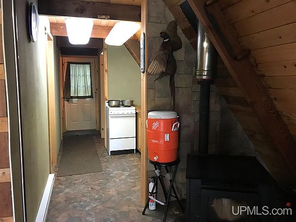This affordable up north getaway has two bedrooms, small kitchenette area, living room with a pellet stove and a loft above. Property also has a nice 12’x 10’ shed and a newer roof on the A-Frame cottage. Tucked back off the highway it is close to ATV and Snowmobile Trails and Keyes Peak Ski Hill. Also near to lakes, rivers and public hunting land.