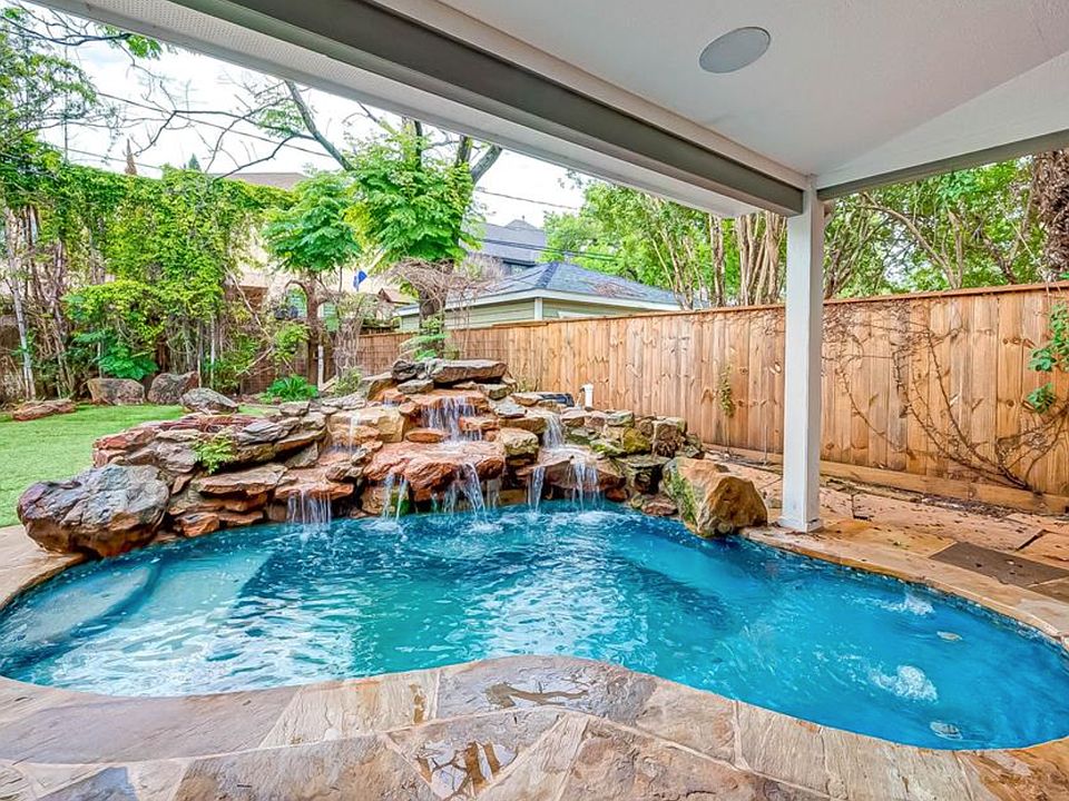 - Inviting Outdoor Oasis: Relax or entertain in your private semi-covered outdoor space featuring a heated cocktail pool with lights and tranquil waterfall - perfect for Houston evenings.