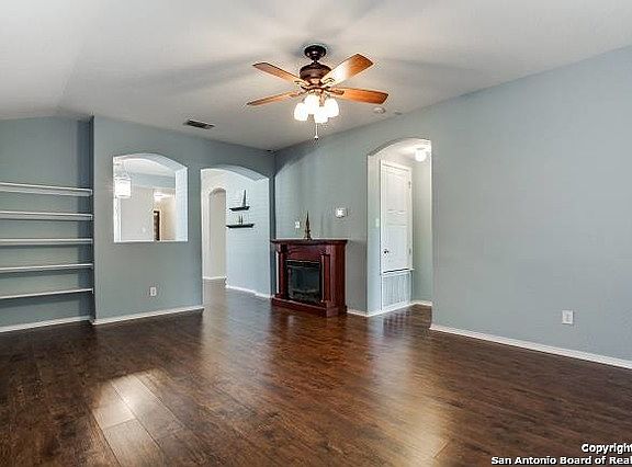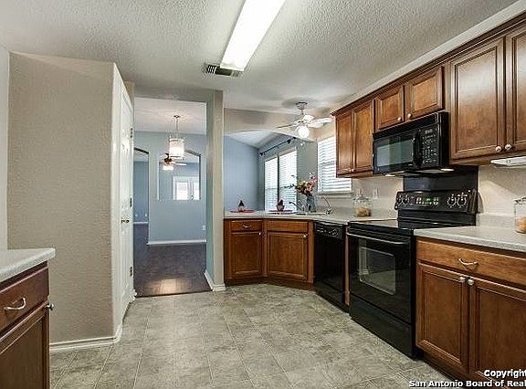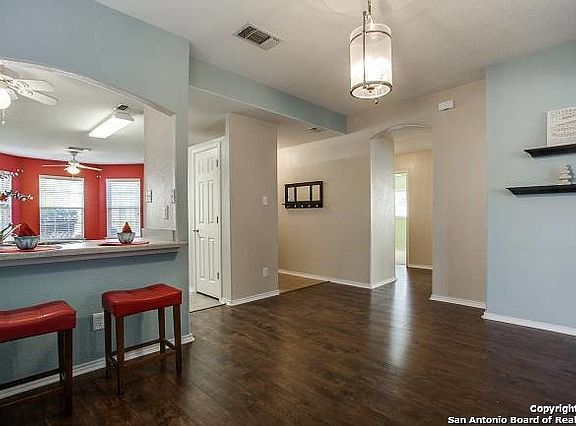Centrally located off of Bulverde Rd just past Loop 1604. This highly desired single story home with a two car garage, features 3-4 bedrooms with a split master, hosting a wonderful flex room/4th bedroom, double vanities & walk-in closet. The spacious living room boasts striking wide plank wood laminate floors and intriguing arches/niches/shelving. You will fall in love with the kitchen, and it's abundance of cabinets, counter space and Bosch brand dishwasher and 4 door stainless steel refrigerator. The inside utility/laundry room also provides plenty of shelving for multiple uses. Enjoy entertaining friends and family on the expansive covered deck overlooking a peaceful greenbelt. Location is unmatched with shopping, HEB, expressways, banks and AF bases all within minutes of your front door. Call today to schedule your private showing of this incredible home.