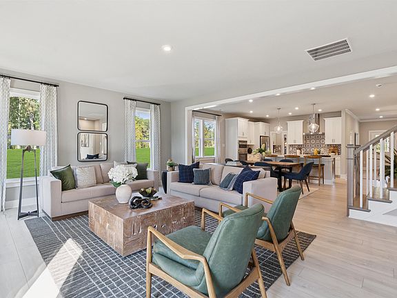 Large loftWalk-in closetsDouble ovensButler pantryOpen floorplan conceptInviting entry wayCovered patio