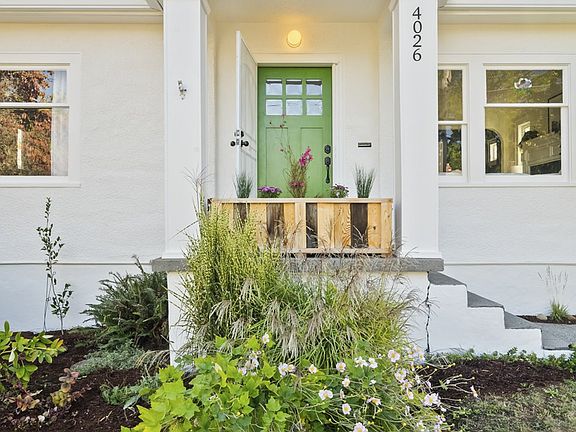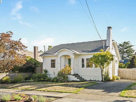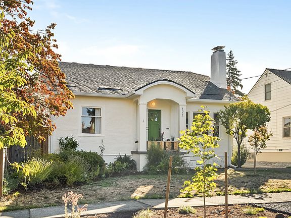 Discover this exceptional 1927 stucco home, exuding charm and elegance with its newly painted exterior in a timeless essential white, with just the right touch of creamy warmth. Upon the approach, prepare to be greeted by a landscaped front + the fenced backyard as a more private retreat. Embrace the essence of Portland living in this charming home, with beautiful oak hardwood floors that extend through the inviting living + dining room, complete with a cozy wood-burning fireplace. With coved details, quaint nooks, and a serene atmosphere, this home offers a unique sanctuary ready for its next fortunate owners. 2 bedrooms on the main and 2 on the upper level with an adjacent bonus space. Find a spot to tuck away and read, stretch + options for sleeping and a home office. On the main floor, in the private hall there is a large bathroom with double sink, expansive counter, plenty of storage and a shower/ tub combo. Find the joy of outdoor living in the fenced backyard, offering plenty of room for gardening + enjoying the beauty of each season as it unfolds. A unique copper cold plunge will remain with the home, providing a refreshing way to stay energized year-round. For added convenience, a covered outdoor dining and lounge area is situated near the back door, seamlessly connecting to the kitchen for entertaining.