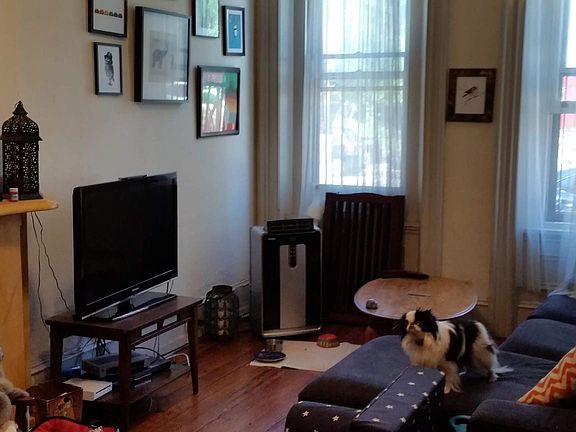 Pretty apartment with original details. Wood floors, Tile bath. Small bedrooms (8'x10' aprox) but the living room and kitchen are nice sized. w/d dishwasher, private yard, hardwood floors, ceiling fans, next to community garden. Local attentive Landlord. Open to short term.