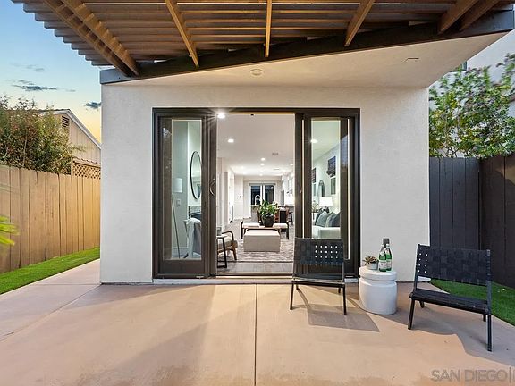 Chic and Modern newer construction home in the heart of Crown Point just steps away from the Bay with incredible ocean, bay and Downtown skyline views! You'll fall in love with the sleek and contemporary design throughout with a full size rooftop deck perfect for entertaining friends and family. The primary bedroom has exquisite views of Downtown San Diego along with an en-suite straight out of a magazine. The open concept kitchen features an eat-up bar, designer picked granite countertops, wine fridge and a Viking appliance package. The living room has a gas fireplace with 2 sliding doors that open up to a private front yard that's elevated from the street and has synthetic turf and vegetation for lots of privacy. The third story has a bonus room/family room that leads you to the spacious rooftop deck with incredible city, bay and ocean views! Enjoy the beach lifestyle at your modern home just steps away from the Bay with incredible indoor/outdoor living for that perfect California Lifestyle!