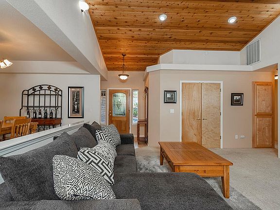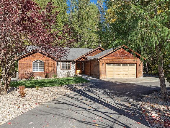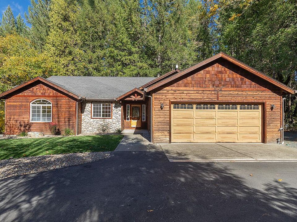 Country retreat on 2.12 acres in a Beautiful West Grants Pass setting! This charming single-level 3-bedroom, 2-bath home offers 1864 sq ft of comfortable living with stunning knotty pine vaulted ceilings, two cozy wood stoves, and a warm, inviting great room design. The kitchen features granite counters, a breakfast bar, pantry, and easy access to the formal dining room—perfect for entertaining. Enjoy the outdoors on the expansive wrap-around deck with covered areas overlooking the creek and property. This home is made for country living with a fenced garden, fruit trees, greenhouse, poultry coop, storage shed, and a picturesque seasonal creek crossed by a bridge shared with a neighbor. Additional features include a gated entry, paved circular driveway, attached 2-car garage, and a whole-house Generac generator for peace of mind. There's also room to build a shop. A true blend of natural beauty and practical comfort. Your private retreat is waiting for you to discover it.