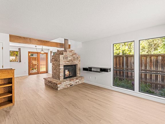 Double sided fireplaceSurrounded by treesEnd-unit location