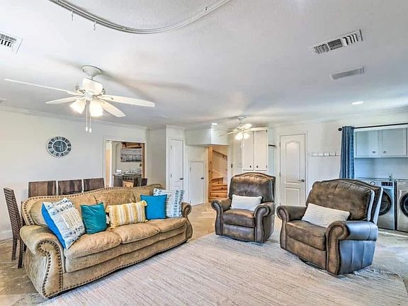 Experience coastal living at its finest in this beautiful home located in the sought-after Pirates Retreat subdivision of Galveston. This spacious 5-bedroom, 5-bath property offers over 3,500 sq ft of living space with multiple gathering areas, a modern kitchen, and large windows that capture stunning water views. Currently operating as an active Airbnb with consistent weekend bookings, this home offers the perfect blend of lifestyle and income potential. Enjoy the open layout, elegant finishes, and outdoor spaces ideal for entertaining or relaxing after a day on the water. This Galveston gem won’t last long!