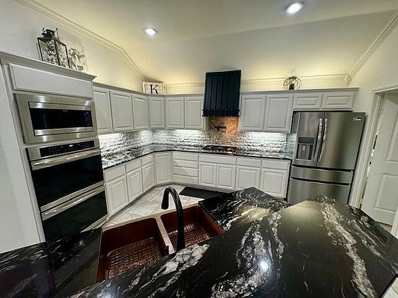 This exceptional Lubbock home showcases high-end upgrades, expansive living spaces, and thoughtfully designed indoor and outdoor amenities—perfect for both everyday living and entertaining. Welcomed by striking curb appeal, the brick exterior, arched entryway, and mature landscaping set the tone for the quality found throughout. Inside, the open-concept layout flows seamlessly into a beautifully updated chef's kitchen featuring new granite countertops and sink, under- and above-cabinet lighting, custom cabinetry, and premium appliances. The kitchen opens to a spacious living area highlighted by a dramatic stone fireplace, built-ins, and integrated speakers—also installed in the primary suite and basement—creating an ideal setting for hosting or relaxing. The primary suite offers a true retreat with a tray ceiling, spa-like en-suite bathroom, and his-and-hers walk-in closets designed for exceptional storage and organization. The luxurious bathroom includes a soaking tub, oversized glass-enclosed shower with designer tile, dual vanities, and refined finishes throughout. Additional interior highlights include a large private office and a spacious basement, providing endless flexibility for a game room, media space, gym, or additional entertaining area. Step outside to a backyard built for enjoyment and low maintenance. The impressive approximately 460 sq ft pergola creates a shaded outdoor living area, complemented by artificial turf, a putting green, and a sprinkler system for easy upkeep. The backyard is fully enhanced with a Clare hardwired security camera system covering both the driveway and backyard, while new Pella windows add efficiency and modern appeal throughout the home. With premium upgrades, generous square footage, and standout outdoor features, this home offers a rare opportunity to own a beautifully appointed property in Lubbock that truly checks every box.