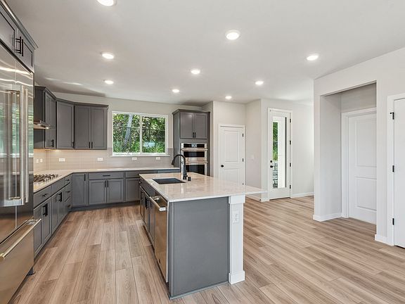 Home Details: Rookwood Dark Green Exterior Color Scheme (Actual color may differ from rendering) Elevation B 2-Bay Garage The Sienna at Lakeview Terrace elegantly unfolds over 2,550 square feet of living space. The floor plan's lower level, home to the two-bay garage, leads up to the main floor. The open-concept design makes it easy to mingle as you relax in the living area, dine in the dedicated dining space, and cook in the spacious kitchen, complete with an island and pantry. The room extends onto a front deck, as well as a back patio, for seamless indoor-outdoor living. A convenient half bathroom can also be found on the main level. Upstairs, the primary suite serves as a luxurious escape with its own five-piece en-suite bathroom, private deck, and walk-in closet. The two additional bedrooms share a full bathroom, alongside a laundry room, creating a modern lifestyle with both comfort and style.